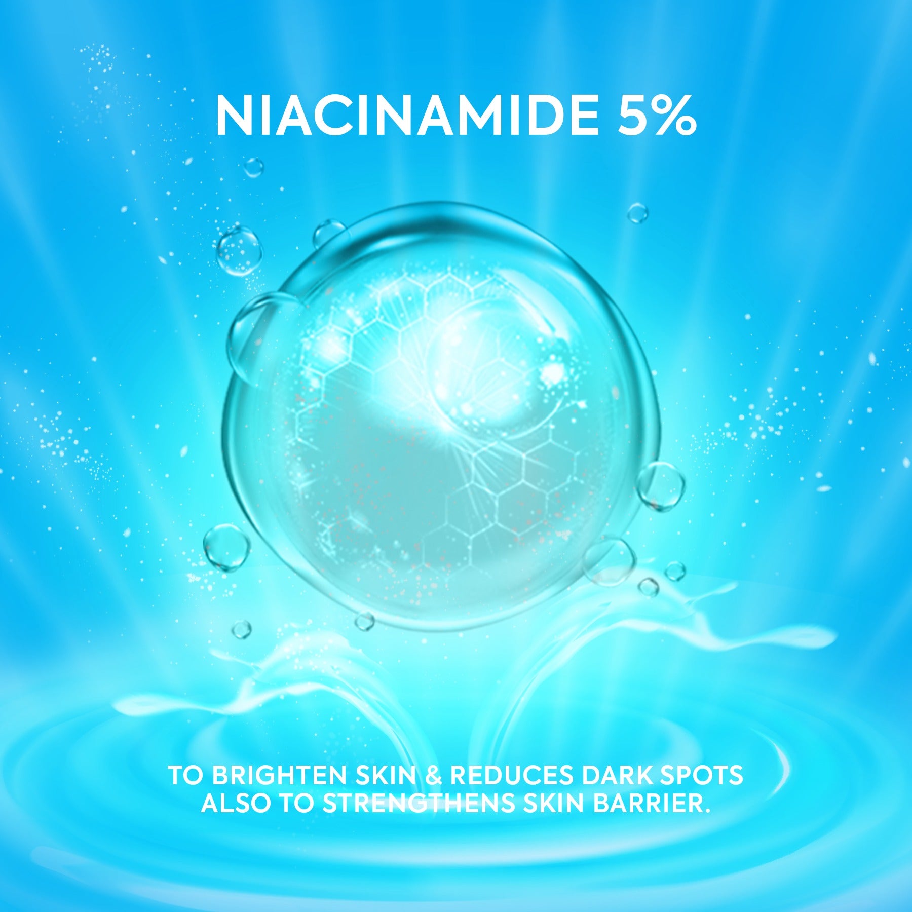 • Niacinamide 5% – Brightens skin and strengthens the skin barrier